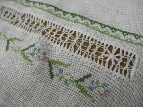 まずはグリーン2色でクロスステッチのボーダーから入ったのでした。