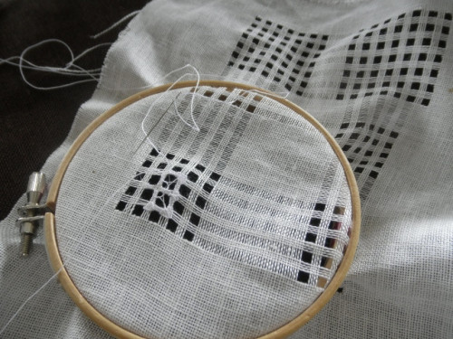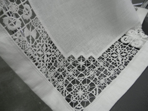 幅の広~いドロンワーク! 糸の結びや引き具合がとてもとても難しく