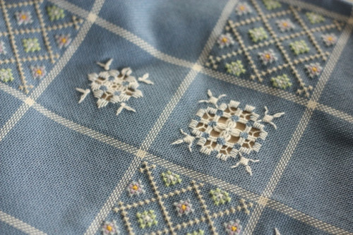 でもそれだけではつまらないわ・・・とクロスステッチをこれまた少々ランダムに飛ばしてみました。