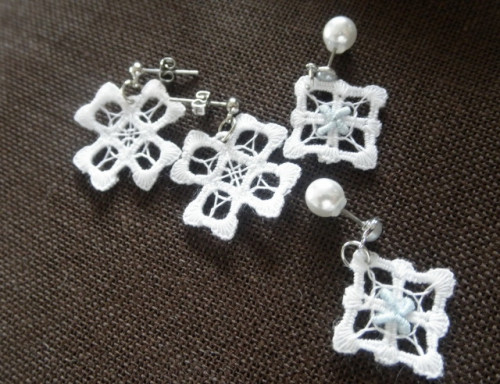 基本的な刺し方がわかるよう皆さん一番小さなピアス用モチーフからスタートです。