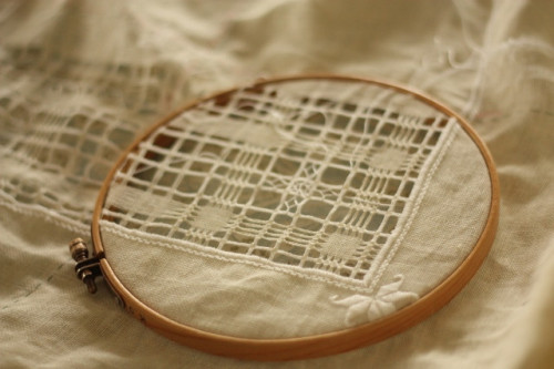 あまりにも素敵だったのでちょっとまねをしてクリーム色の生地に白糸で刺すことに決めたのでした。