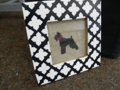 長津田教室Iさん シュナウザー福ちゃんをお飼いのIさん 素敵な額を見つけていらしたのでちょっとおめかししちゃう?と お隣Oさんが使おうとしてお買い上げ の赤い糸を ちょっぴりいただいておめかしを。 赤いリボンを首に結んで・・うう~ん可愛い!! |