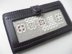 湘南台教室Kさん 携帯のケースに刺繍のカバーをしたいの!と ご友人に刺繍をカード状に仕上げて入れ替えのできる ささっと刺し上げ早速お使いルンルンです。 |