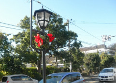 この時期街灯にリースが飾られ心和みます。