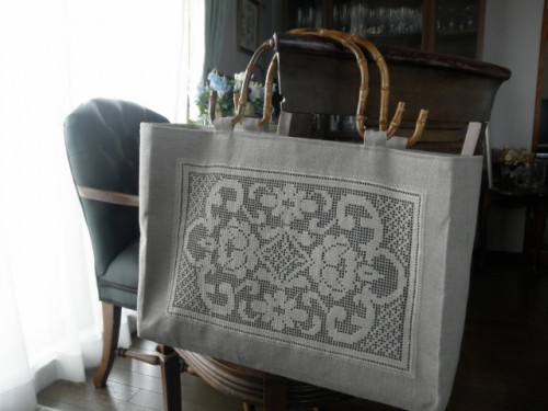 フィレのバッグの他クッションにしたりフレームで飾ったりまたクロスステッチに置き換えたり・・