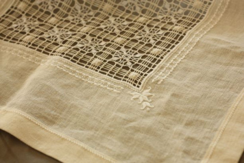 もともとクチュリエで粗い生地に濃い色の糸を使用して作成していたものなので
