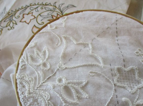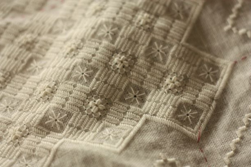 ドロンワークをきちんと系統立ててインサーション(細い縁かがり)メキシコ式、イタリア式、