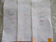 すぐに模様が入れられるよう4目ずつ抜いた麻のガーゼ生地を少々張りを持たせるために