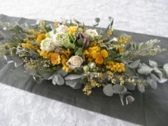 お花も春らしくミモザやクリスマスローズやパンジーの入ったスワッグを