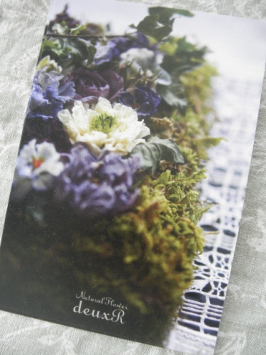 作品展ご案内葉書にもすずらんのドライフラワーとリボンで雰囲気作りにご協力くださった