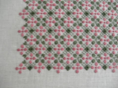 それぞれ端の中心からコーナーに向かってクロスステッチを刺しぶつかったところで