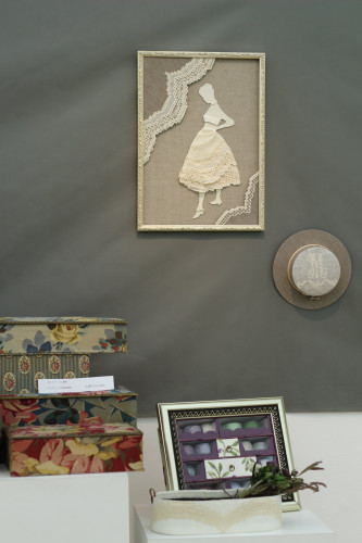糸入れのBOXはOさんが生前、広岡先生のご指導の下 広岡先生からお借りしたアンティークのカルトナージュとともに飾らせていただきました。 |