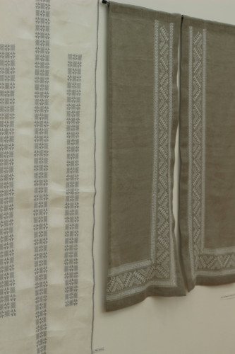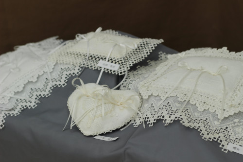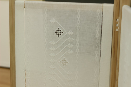 2連のパーテーションにさらっと仕上げた繰り返し模様。 そうそうリングピロウも・・・ ドロンワークの練習をそのまま作品に・・・