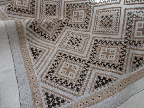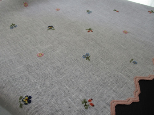 1つはプチポアンで仕上げたビレロイボッホ、プチフルールの小花を散らしたドイリーを