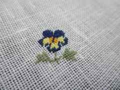 2目のクロスステッチの4分の1の針目で小さく表現。何て可愛いのでしょう。