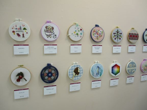 どの作家さんも直径12㎝の円の中にそれぞれの技法が詰め込まれ楽しい見ごたえのある 展示でした。カウントもの、クロスステッチ、フランス刺繍、スタンプワーク、リボン刺繍、 |