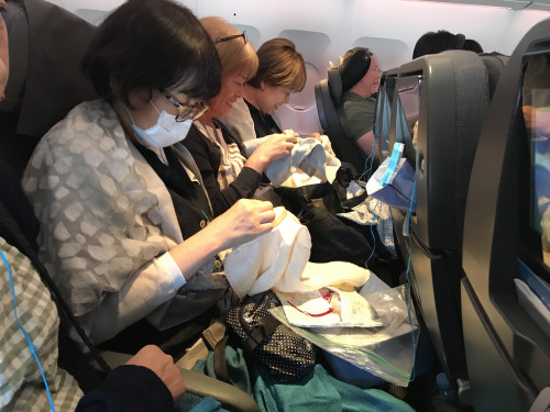 動かなくても良いまとまった時間がこんなにある飛行機の中は絶好のチクチクタイム!