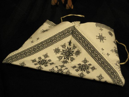 はさみを持たず前もって糸をカットしパターンを見なくても刺せる部分をとっておきましたの。