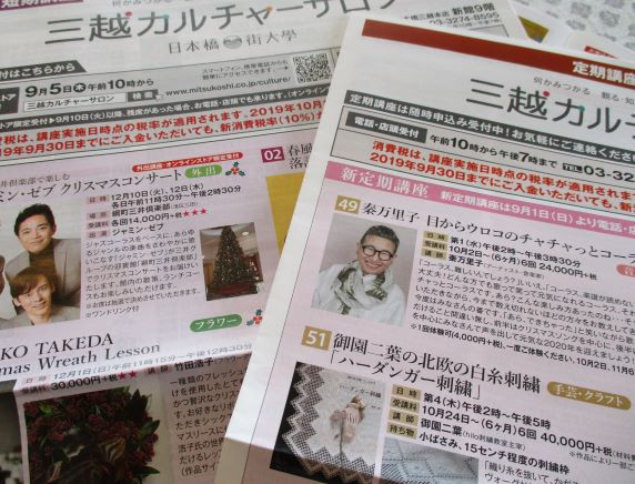 尚、これ以降の日本橋三越カルチャーサロンのキャンセル待ちはカルチャー窓口の業務に