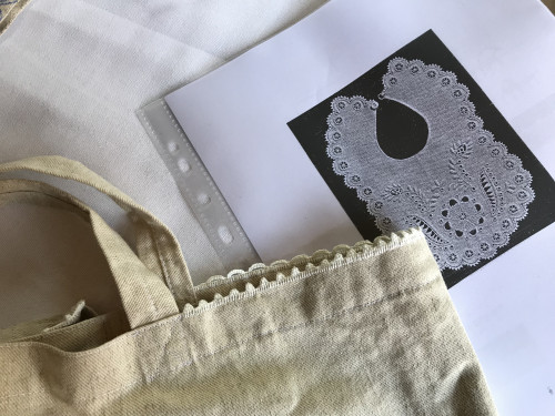 トートバッグの淵に4種のスカラップが練習できる様材料を用意してくださいました。