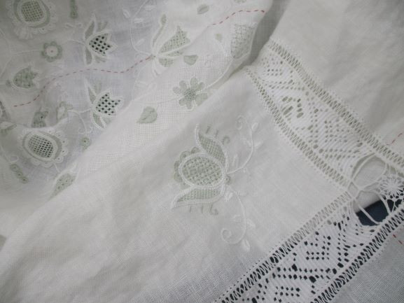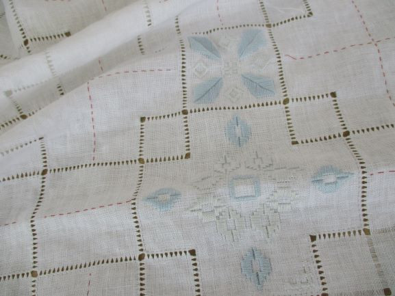 そして幅広くとったドロンワークのダーニングと上下の細いかがり・・・