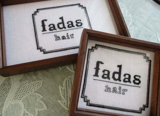 そのお店のロゴなのだそうでクロスステッチとバックステッチでロゴを刺し