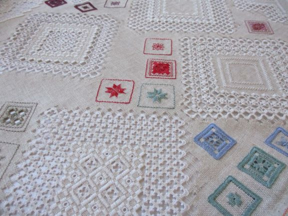 実は手が空いたこともあり一気に1つは刺してしまったの。グレーの生地にECRUの糸で