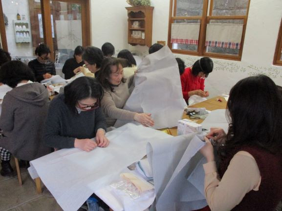 皆さんそれぞれのお色で新しい布にしつけから取り掛かる様子はとても気持ちよく