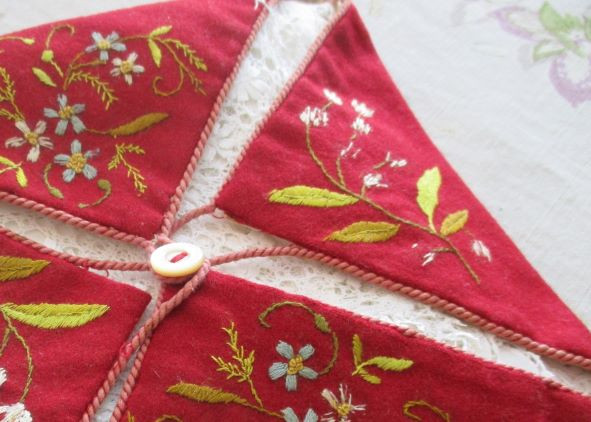 中にボビンレースの付いたハンカチが5枚ほど入っていましたがそのケースが素敵なのです。