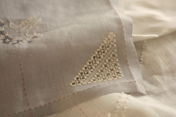 蚤の市で見つけたというアンティークのハンカチのセット。