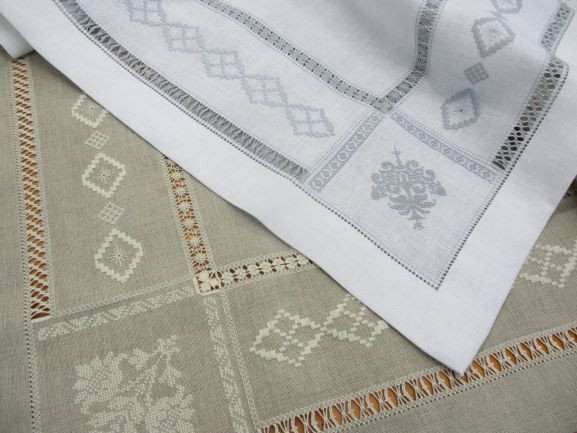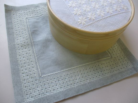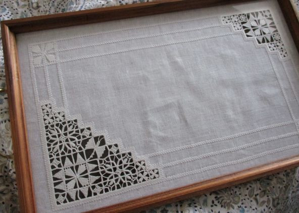 その大きな作品の練習に・・と刺したレティチェッロの小さな作品はトレイに入れましたらこんなに素敵に。