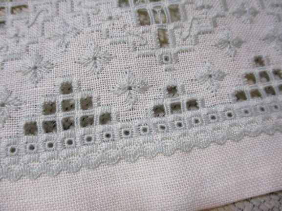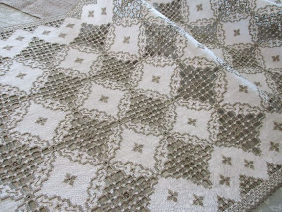 糸の色は私もEさんも大好きなDMC#928 13目のクリーㇺの生地に優しく溶け込みます。