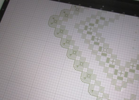 こちら。繰り返されるひし形のような模様をどんどん刺すと丸いラインが出来上がっていく・・・