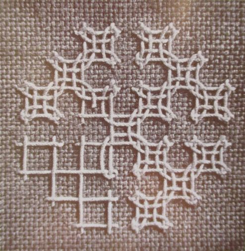 初めに糸を#状に渡しておいてそこに上から糸を規則正しく巻き付けていきます。
