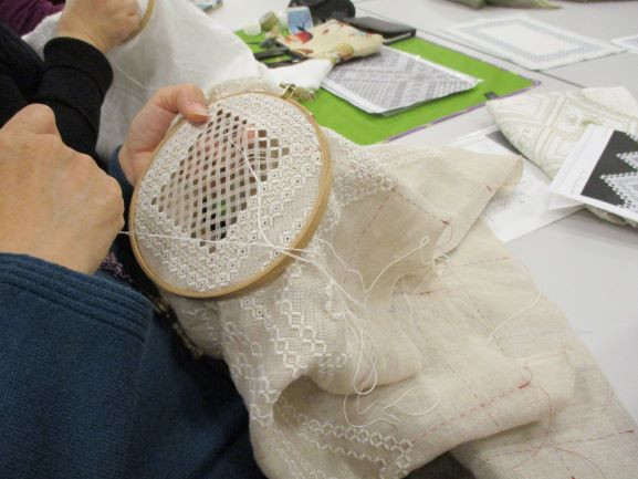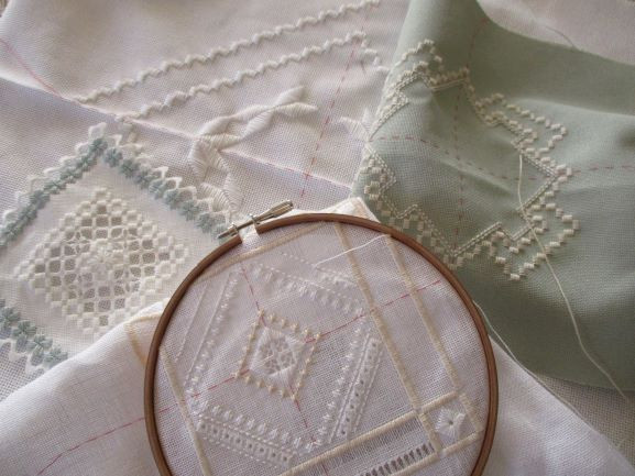 しつけから始まりサテンステッチ、アイレット、ウェービング、ブランケットにかがりの数々