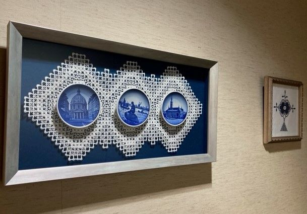 昨年の北欧旅行にも参加なさったSさんのお皿のフレームが出来上がりました。