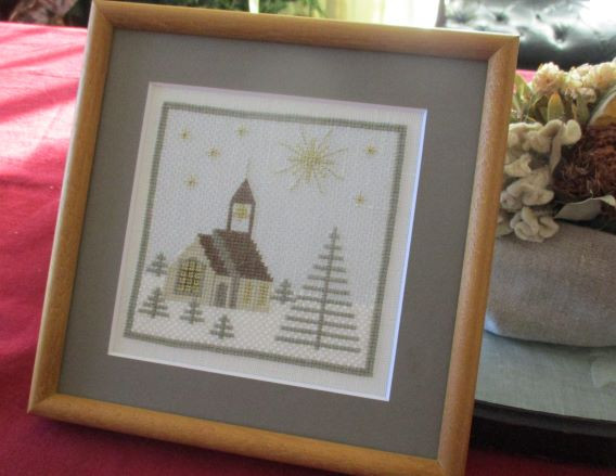 穏やかな北欧のクリスマス風景。糸の色に合わせマットは少し深い