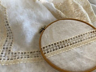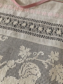 上下にドロンワーク入れちゃう?そのまた上下にクロスステッチなんかあしらったら