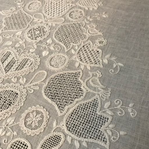 周りのドロンワークのダーニングが重厚感を加え素晴らしい作品が出来上がりました。