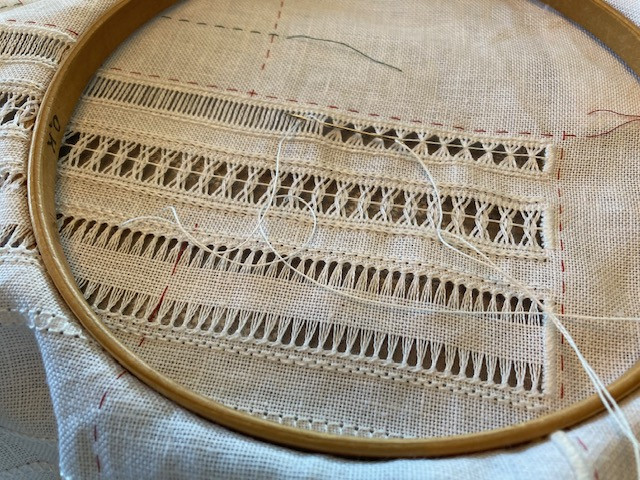 画像は裏ではなくドロンワークをする時はわざと刺繍枠は