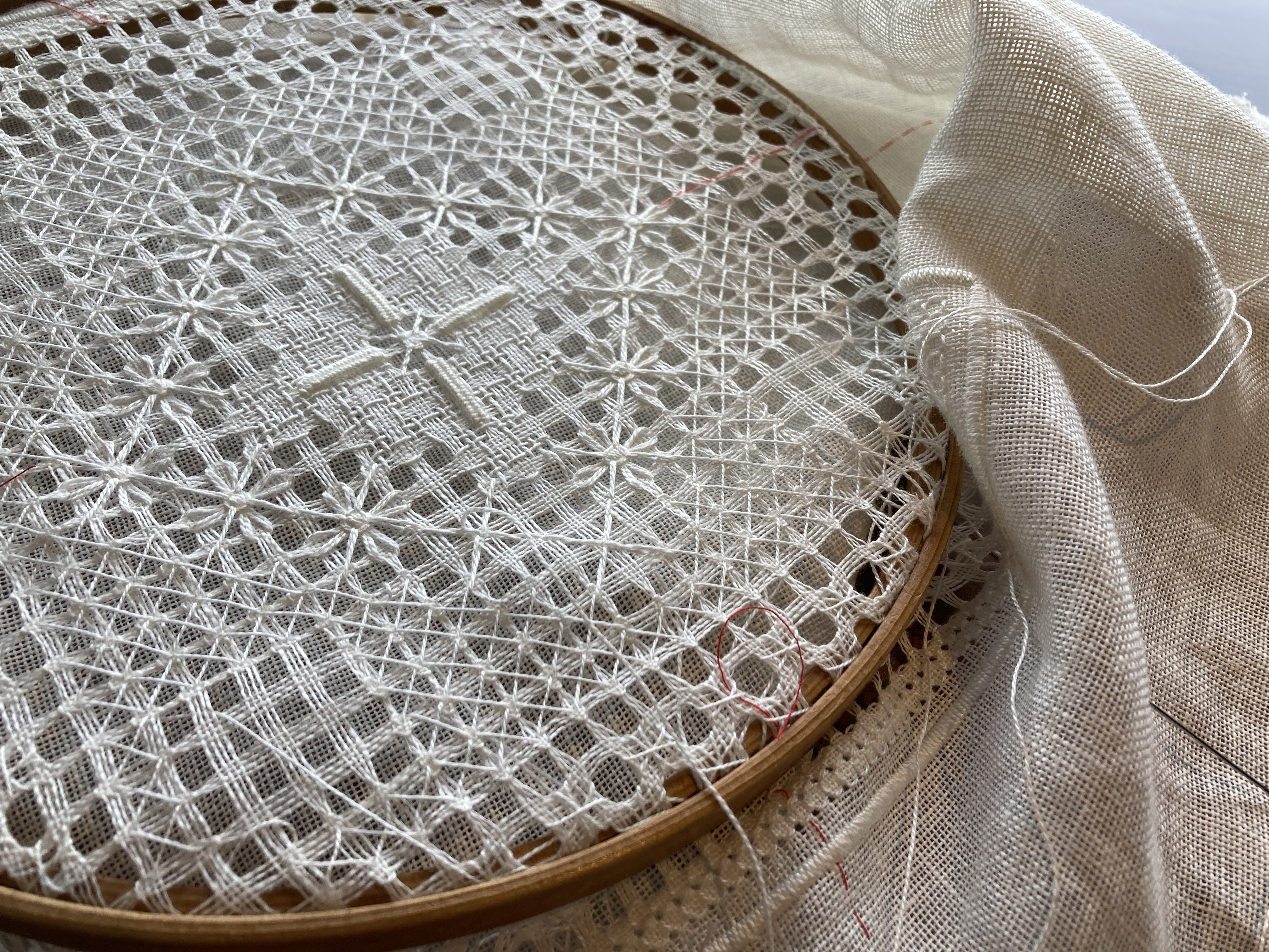 作品展の時に付箋にして売り出したドロンワークにいたします。