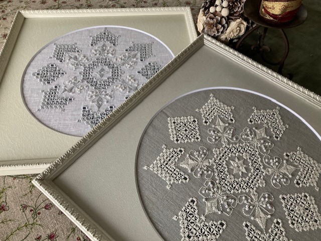 作品展で見た雪の結晶を色違いで2点お刺しです。